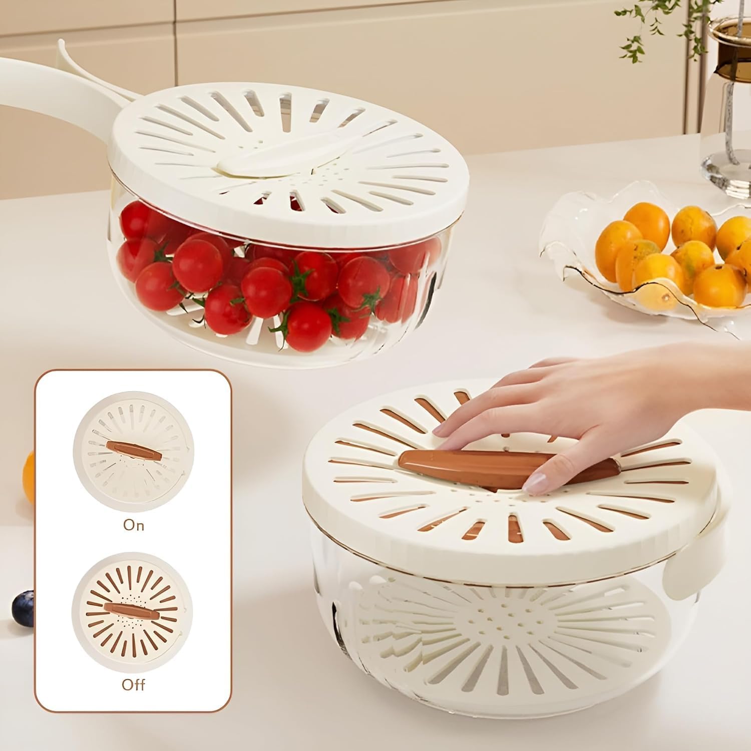 Comes with a sleek hidden handle for easy carrying and storage. The minimalist, modern look makes it ideal for displaying or storing fresh berries and kitchen essentials.