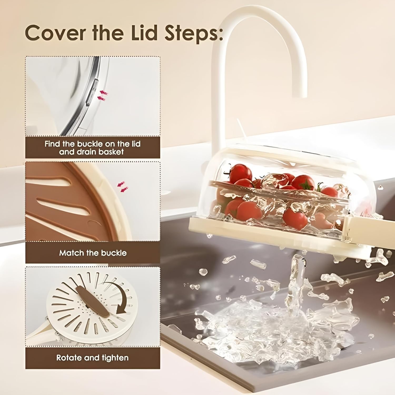 Features a built-in drain basket with a cover that efficiently removes excess water after washing dishes, fruits, vegetables, and more—saving you time and effort.